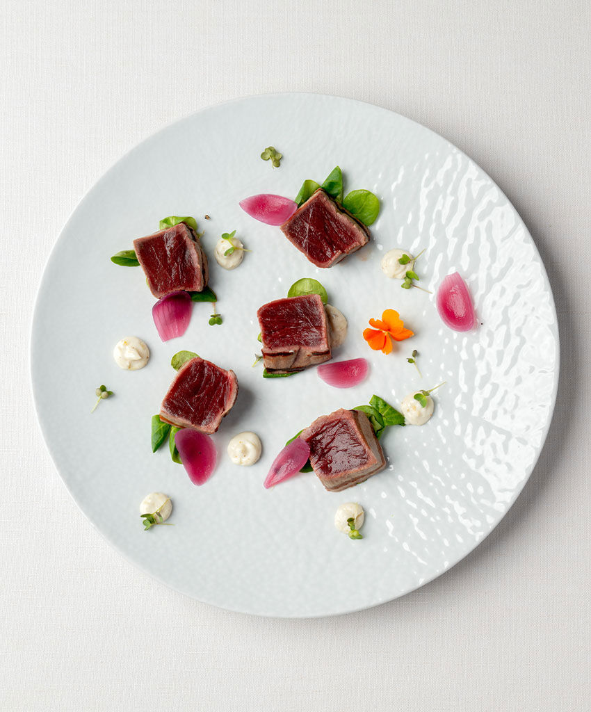 The tasting menu offers a restyled version of traditional dishes of Calabria, prepared with selected and only in-season raw ingredients, where tuna is a must, as a way to tell a long story about sea and passion for quality of the Callipo Family.